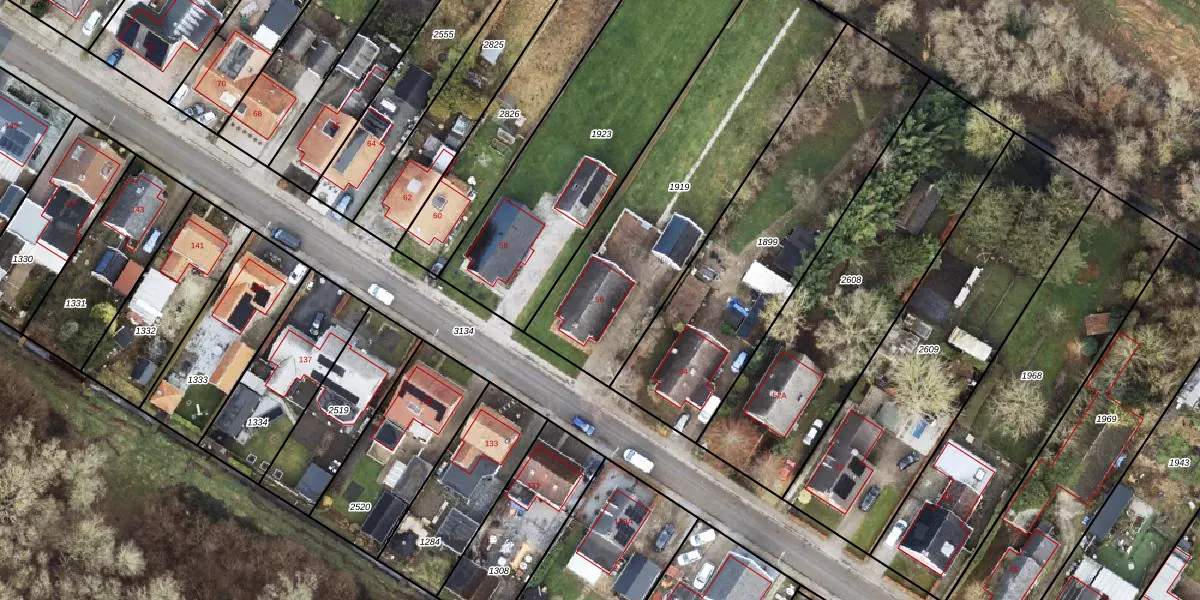 Gebruik de zoekbalk of klik op een perceel voor informatie over de adressen binnen dit perceel.