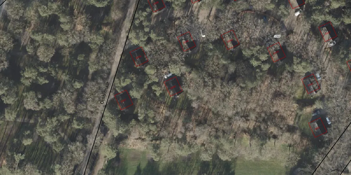 Het adres ligt op het perceel OMN01-K-1066, dat zich in de kadastrale gemeente Ambt-Ommen bevindt. De oppervlakte van het perceel is 3,4 ha. Dat is groter dan gemiddeld in Ambt-Ommen, waar de gemiddelde perceeloppervlakte op 1,3 ha ligt. De grootste perceeloppervlakte in de kadastrale gemeente is 2,46 km². De kleinste oppervlakte bedraagt 0 m². Op het perceel liggen in totaal 16 adressen. De laatste wijziging in het de Basisregistratie Kadaster (BRK) was op 09-06-2006.