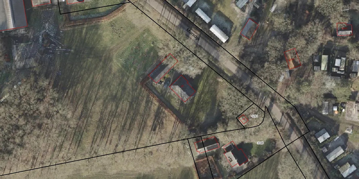 Het perceel waarop Marsdijk 2-a staat heeft een oppervlakte van 3,0 ha. Dit is een zeer groot perceel. De perceeloppervlakte wordt geregistreerd door het Kadaster. Gedetailleerde informatie over de maten van dit perceel kunt u vinden in het rapport Kadastrale kaart met maatvoering van Marsdijk 2-a.