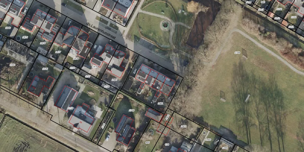 Het perceel waarop ds.Laurentiusstraat 12 staat heeft een oppervlakte van 885 m². Dit is een groot perceel. De perceeloppervlakte wordt geregistreerd door het Kadaster. Gedetailleerde informatie over de maten van dit perceel kunt u vinden in het rapport Kadastrale kaart met maatvoering van ds.Laurentiusstraat 12.
