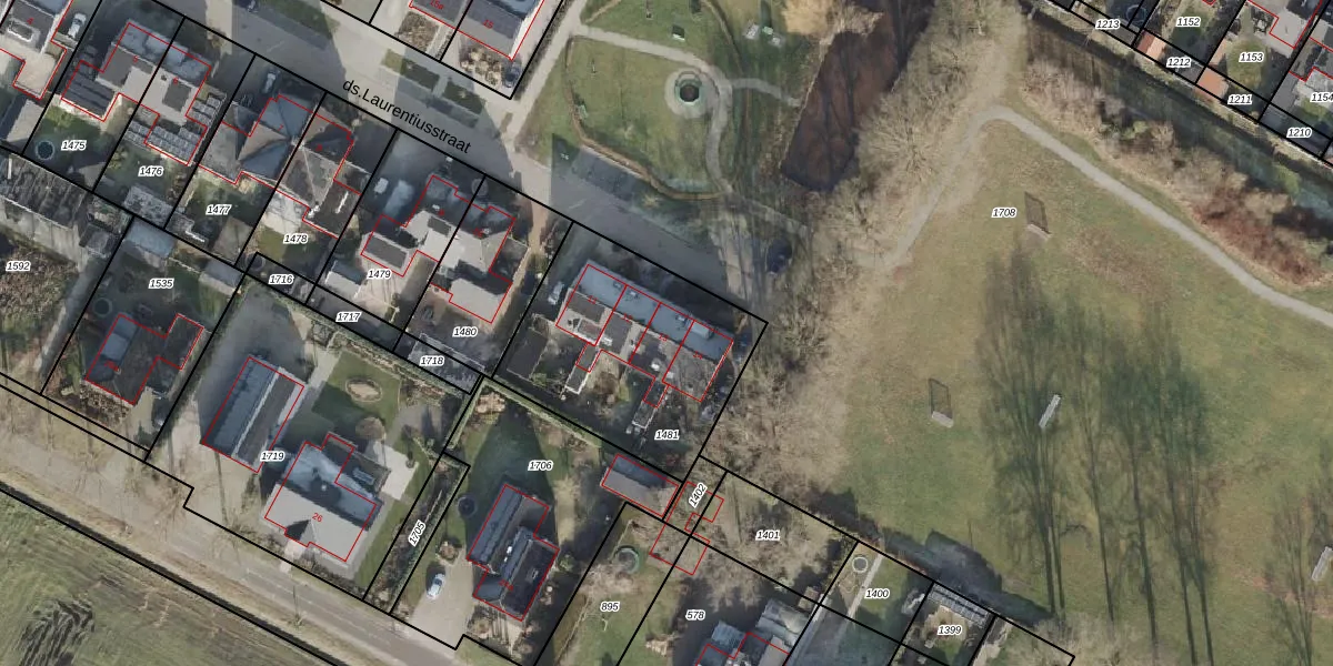 Het perceel waarop ds.Laurentiusstraat 13 staat heeft een oppervlakte van 885 m². Dit is een groot perceel. De perceeloppervlakte wordt geregistreerd door het Kadaster. Gedetailleerde informatie over de maten van dit perceel kunt u vinden in het rapport Kadastrale kaart met maatvoering van ds.Laurentiusstraat 13.