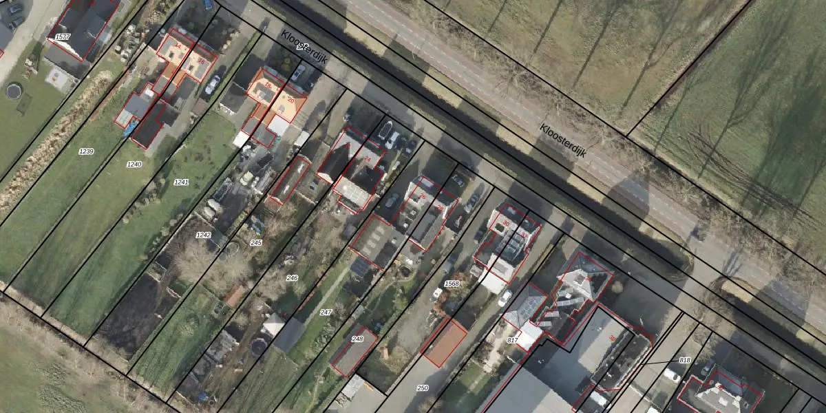 Het perceel waarop Kloosterdijk 26 staat heeft een oppervlakte van 890 m². Dit is een groot perceel. De perceeloppervlakte wordt geregistreerd door het Kadaster. Gedetailleerde informatie over de maten van dit perceel kunt u vinden in het rapport Kadastrale kaart met maatvoering van Kloosterdijk 26.