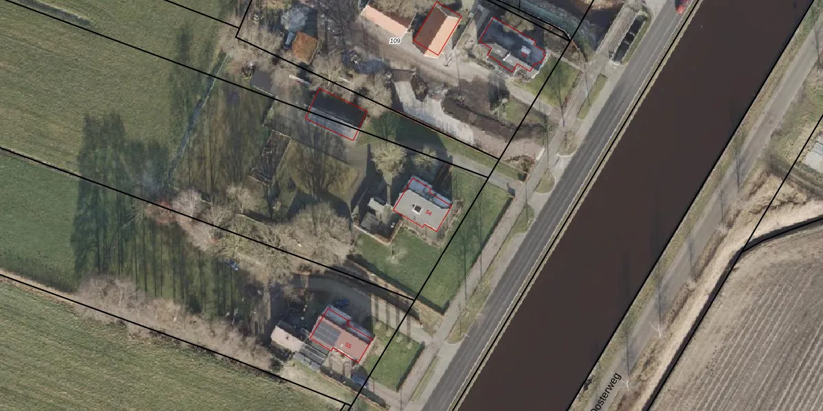 Het perceel waarop Westerweg 54 staat heeft een oppervlakte van 9770 m². Dit is een zeer groot perceel. De perceeloppervlakte wordt geregistreerd door het Kadaster. Gedetailleerde informatie over de maten van dit perceel kunt u vinden in het rapport Kadastrale kaart met maatvoering van Westerweg 54.
