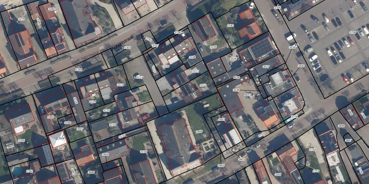 Het perceel waarop Achterstraat 19 staat heeft een oppervlakte van 320 m². Dit is een groot perceel. De perceeloppervlakte wordt geregistreerd door het Kadaster. Gedetailleerde informatie over de maten van dit perceel kunt u vinden in het rapport Kadastrale kaart met maatvoering van Achterstraat 19.