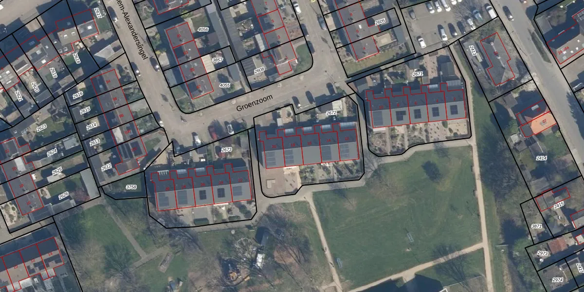 Groenzoom 18 is gelegen op kadastraal perceel BEE03E2672. Deze kadastrale aanduiding is uniek en wordt gebruikt door het Kadaster om eigendomsrechten en andere zakelijke rechten vast te leggen. Het perceel maakt onderdeel uit van de kadastrale gemeente Beesd.
