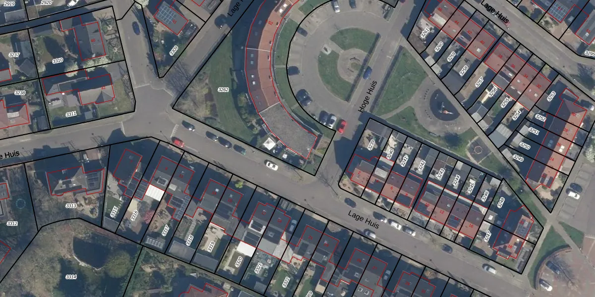 Het perceel waarop Hoge Huis 13 staat heeft een oppervlakte van 2701 m². Dit is een zeer groot perceel. De perceeloppervlakte wordt geregistreerd door het Kadaster. Gedetailleerde informatie over de maten van dit perceel kunt u vinden in het rapport Kadastrale kaart met maatvoering van Hoge Huis 13.