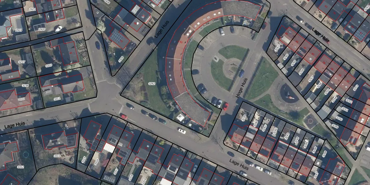 Het perceel waarop Hoge Huis 19 staat heeft een oppervlakte van 2701 m². Dit is een zeer groot perceel. De perceeloppervlakte wordt geregistreerd door het Kadaster. Gedetailleerde informatie over de maten van dit perceel kunt u vinden in het rapport Kadastrale kaart met maatvoering van Hoge Huis 19.