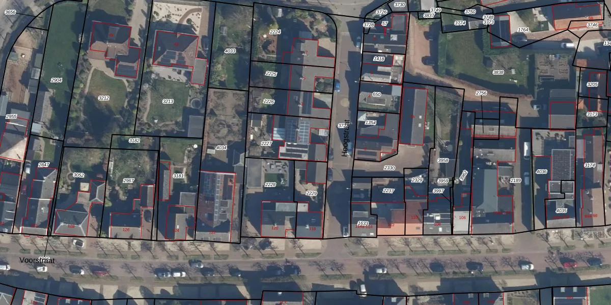Het perceel waarop Hoogstraat 1-a staat heeft een oppervlakte van 385 m². Dit is een groot perceel. De perceeloppervlakte wordt geregistreerd door het Kadaster. Gedetailleerde informatie over de maten van dit perceel kunt u vinden in het rapport Kadastrale kaart met maatvoering van Hoogstraat 1-a.