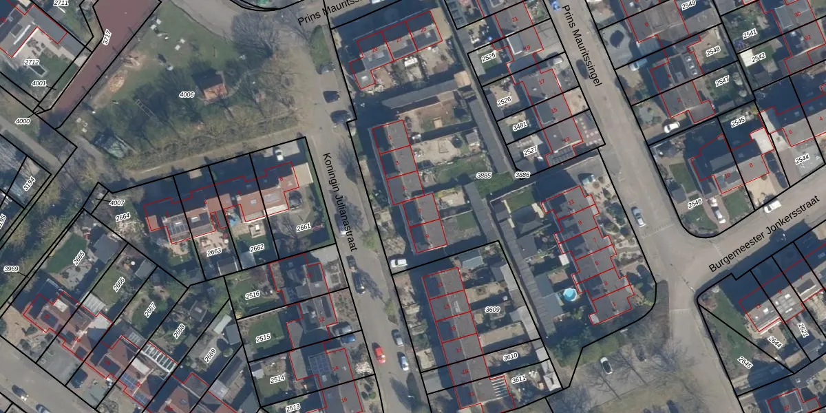 Koningin Julianastraat 7 is gelegen op kadastraal perceel BEE03E3885. Deze kadastrale aanduiding is uniek en wordt gebruikt door het Kadaster om eigendomsrechten en andere zakelijke rechten vast te leggen. Het perceel maakt onderdeel uit van de kadastrale gemeente Beesd.