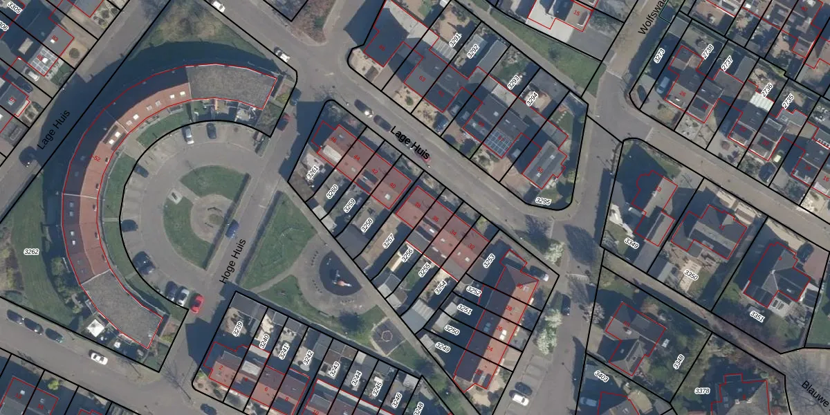 Het perceel waarop Lage Huis 38 staat heeft een oppervlakte van 187 m². Dit is een middelgroot perceel. De perceeloppervlakte wordt geregistreerd door het Kadaster. Gedetailleerde informatie over de maten van dit perceel kunt u vinden in het rapport Kadastrale kaart met maatvoering van Lage Huis 38.