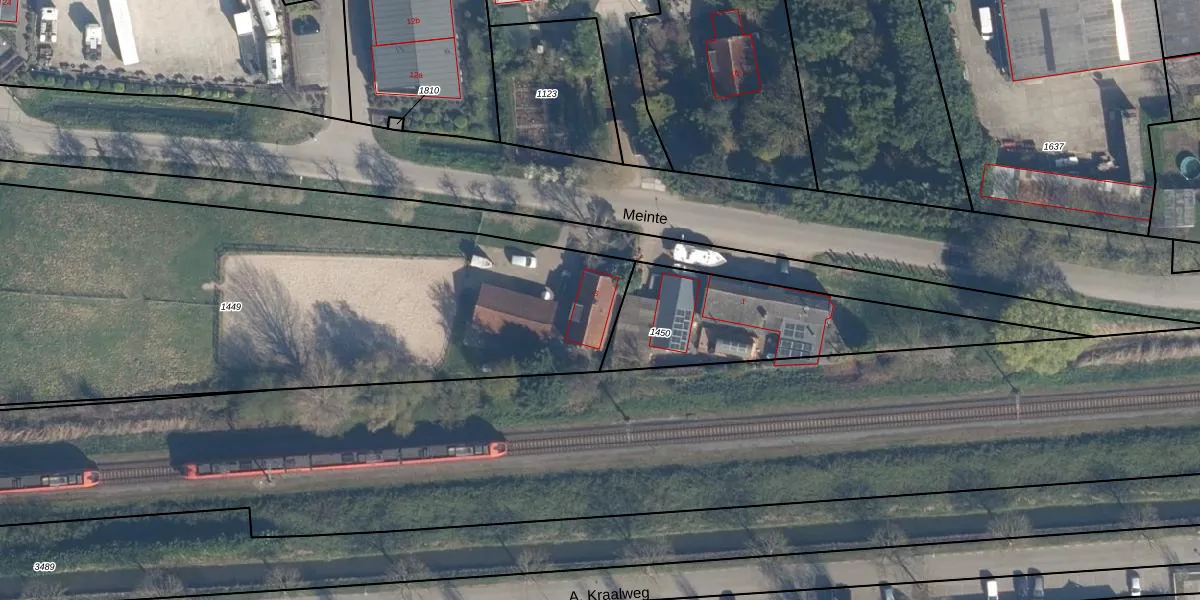 Het perceel waarop Meinte 5 staat heeft een oppervlakte van 3100 m². Dit is een zeer groot perceel. De perceeloppervlakte wordt geregistreerd door het Kadaster. Gedetailleerde informatie over de maten van dit perceel kunt u vinden in het rapport Kadastrale kaart met maatvoering van Meinte 5.
