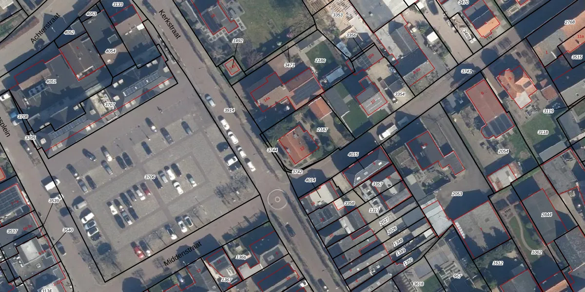 Middenstraat 12 is gelegen op kadastraal perceel BEE03E2187. Deze kadastrale aanduiding is uniek en wordt gebruikt door het Kadaster om eigendomsrechten en andere zakelijke rechten vast te leggen. Het perceel maakt onderdeel uit van de kadastrale gemeente Beesd.