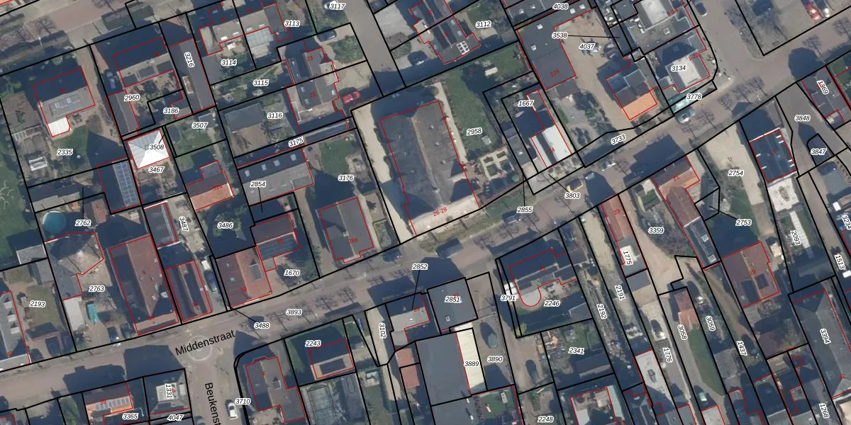 Middenstraat 28 is gelegen op kadastraal perceel BEE03E2958. Deze kadastrale aanduiding is uniek en wordt gebruikt door het Kadaster om eigendomsrechten en andere zakelijke rechten vast te leggen. Het perceel maakt onderdeel uit van de kadastrale gemeente Beesd.