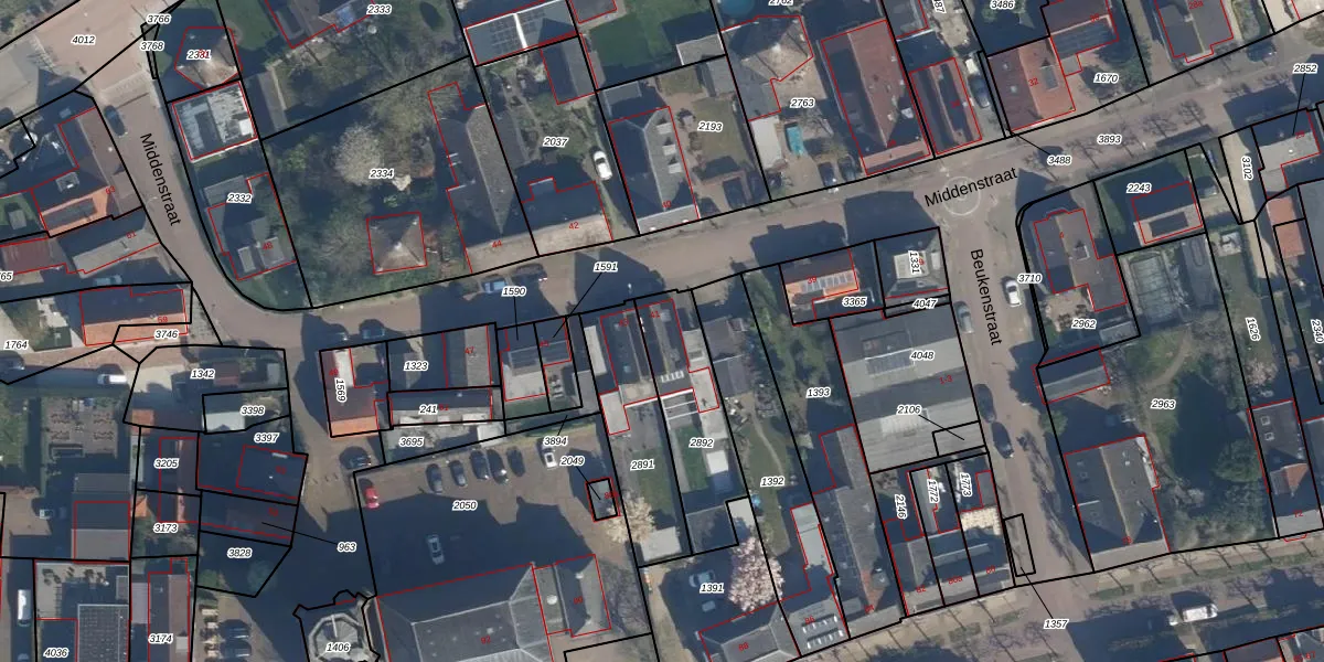 Middenstraat 41 is gelegen op kadastraal perceel BEE03E2892. Deze kadastrale aanduiding is uniek en wordt gebruikt door het Kadaster om eigendomsrechten en andere zakelijke rechten vast te leggen. Het perceel maakt onderdeel uit van de kadastrale gemeente Beesd.