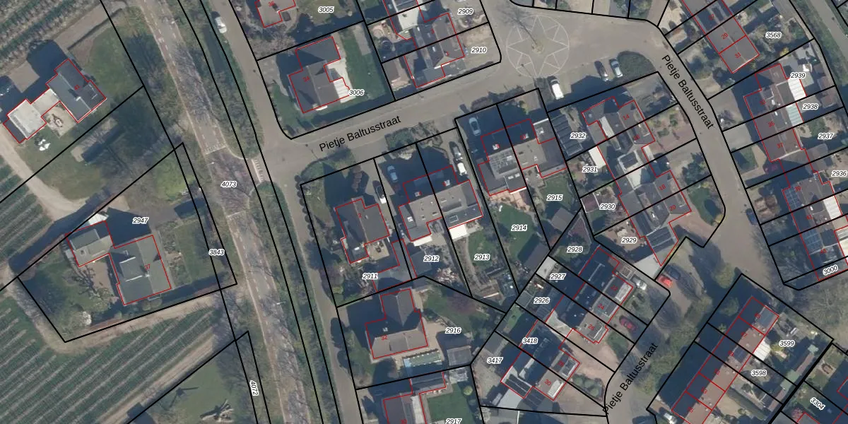 Pietje Baltusstraat 4 is gelegen op kadastraal perceel BEE03E2912. Deze kadastrale aanduiding is uniek en wordt gebruikt door het Kadaster om eigendomsrechten en andere zakelijke rechten vast te leggen. Het perceel maakt onderdeel uit van de kadastrale gemeente Beesd.