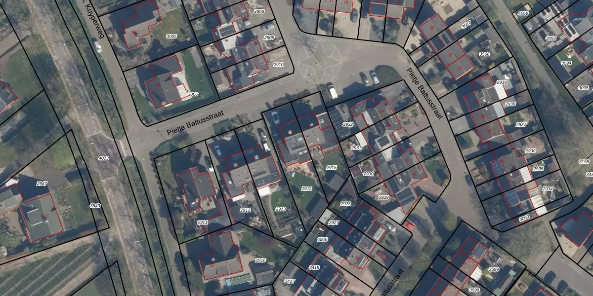 Het perceel waarop Pietje Baltusstraat 8 staat heeft een oppervlakte van 430 m². Dit is een groot perceel. De perceeloppervlakte wordt geregistreerd door het Kadaster. Gedetailleerde informatie over de maten van dit perceel kunt u vinden in het rapport Kadastrale kaart met maatvoering van Pietje Baltusstraat 8.