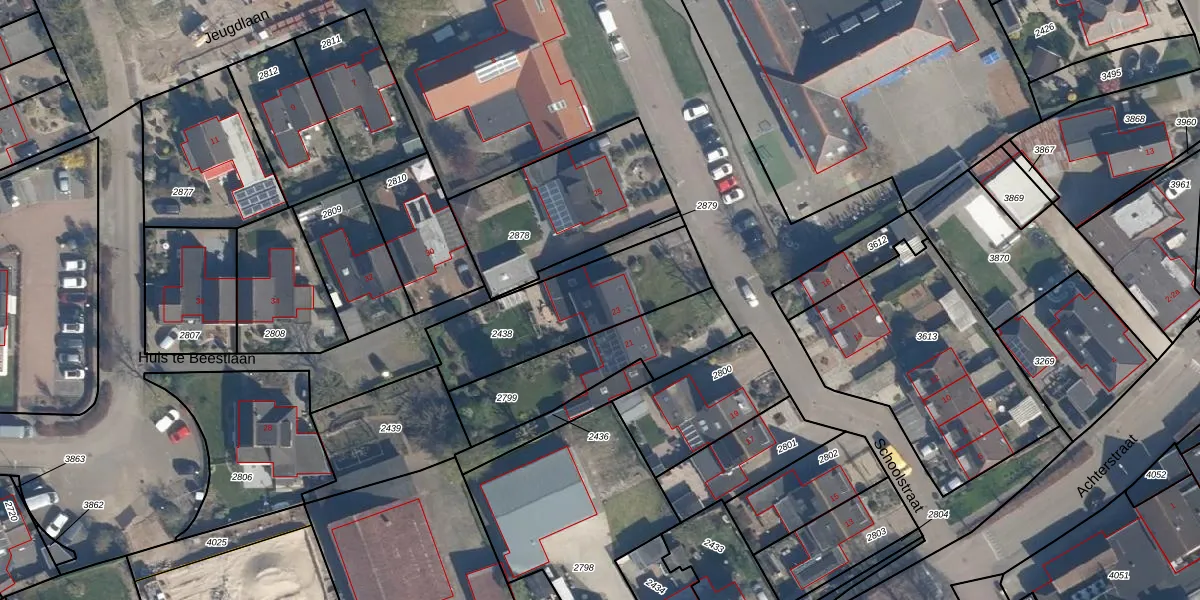 Schoolstraat 23 is gelegen op kadastraal perceel BEE03E2438. Deze kadastrale aanduiding is uniek en wordt gebruikt door het Kadaster om eigendomsrechten en andere zakelijke rechten vast te leggen. Het perceel maakt onderdeel uit van de kadastrale gemeente Beesd.