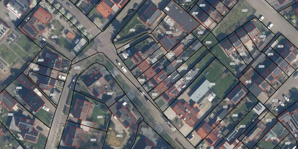 Het perceel waarop Slotstraat 30 staat heeft een oppervlakte van 156 m². Dit is een middelgroot perceel. De perceeloppervlakte wordt geregistreerd door het Kadaster. Gedetailleerde informatie over de maten van dit perceel kunt u vinden in het rapport Kadastrale kaart met maatvoering van Slotstraat 30.
