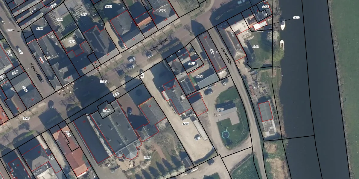 Het perceel waarop Voorstraat 15-f staat heeft een oppervlakte van 938 m². Dit is een groot perceel. De perceeloppervlakte wordt geregistreerd door het Kadaster. Gedetailleerde informatie over de maten van dit perceel kunt u vinden in het rapport Kadastrale kaart met maatvoering van Voorstraat 15-f.