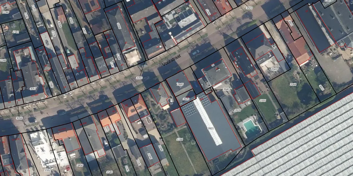 Gebruik de zoekbalk of klik op een perceel voor informatie over de adressen binnen dit perceel.