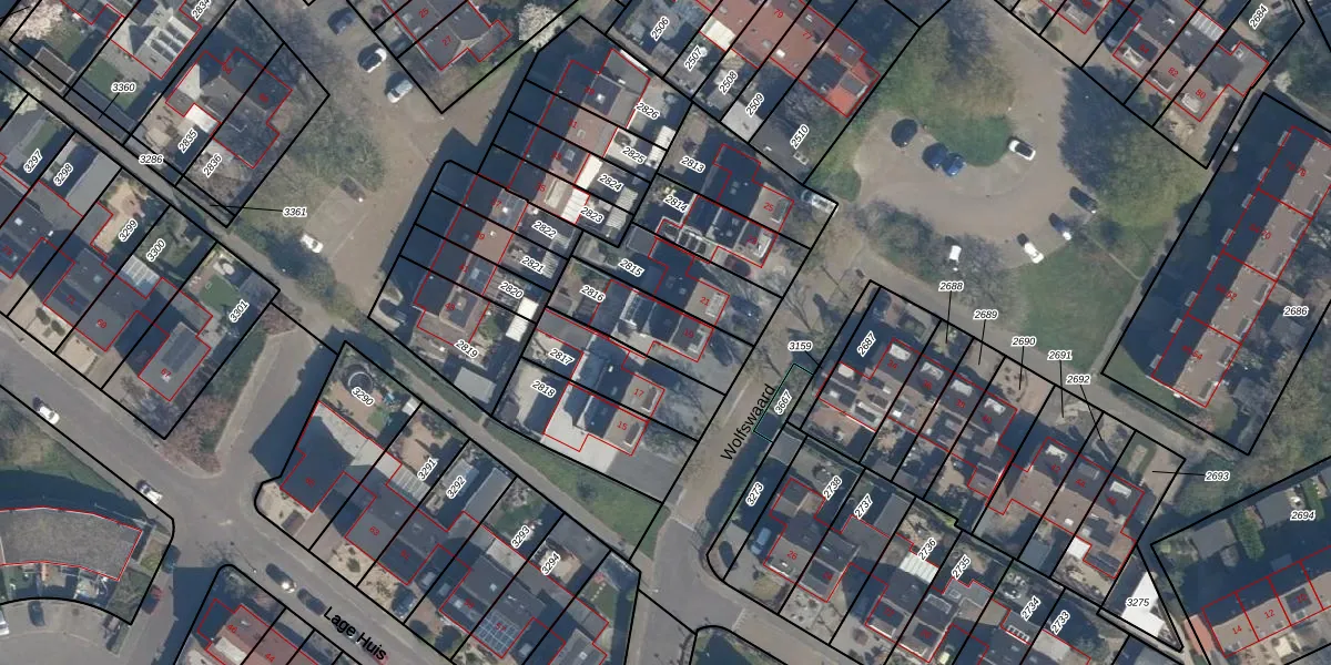 Het perceel waarop Wolfswaard 19 staat heeft een oppervlakte van 259 m². Dit is een middelgroot perceel. De perceeloppervlakte wordt geregistreerd door het Kadaster. Gedetailleerde informatie over de maten van dit perceel kunt u vinden in het rapport Kadastrale kaart met maatvoering van Wolfswaard 19.
