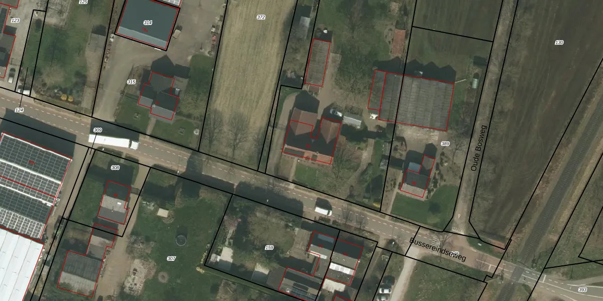 Het perceel waarop Bussereindseweg 83 staat heeft een oppervlakte van 3819 m². Dit is een zeer groot perceel. De perceeloppervlakte wordt geregistreerd door het Kadaster. Gedetailleerde informatie over de maten van dit perceel kunt u vinden in het rapport Kadastrale kaart met maatvoering van Bussereindseweg 83.