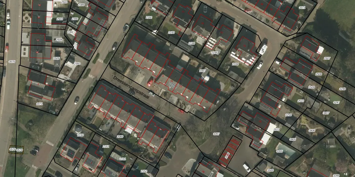 Het perceel waarop Dreessencampstraat 13 staat heeft een oppervlakte van 1955 m². Dit is een zeer groot perceel. De perceeloppervlakte wordt geregistreerd door het Kadaster. Gedetailleerde informatie over de maten van dit perceel kunt u vinden in het rapport Kadastrale kaart met maatvoering van Dreessencampstraat 13.