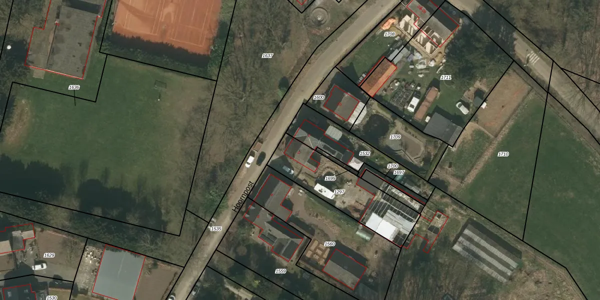 Het perceel waarop Hoornpost 3 staat heeft een oppervlakte van 645 m². Dit is een groot perceel. De perceeloppervlakte wordt geregistreerd door het Kadaster. Gedetailleerde informatie over de maten van dit perceel kunt u vinden in het rapport Kadastrale kaart met maatvoering van Hoornpost 3.
