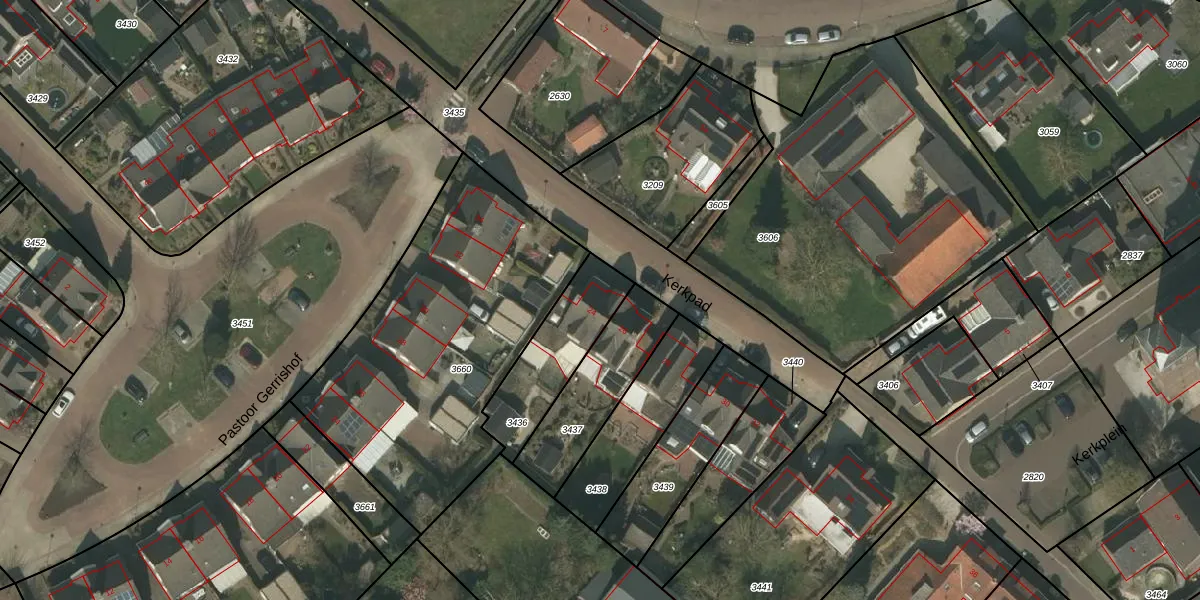 Kerkpad 24 is gelegen op kadastraal perceel BSL02G3436. Deze kadastrale aanduiding is uniek en wordt gebruikt door het Kadaster om eigendomsrechten en andere zakelijke rechten vast te leggen. Het perceel maakt onderdeel uit van de kadastrale gemeente Beesel.