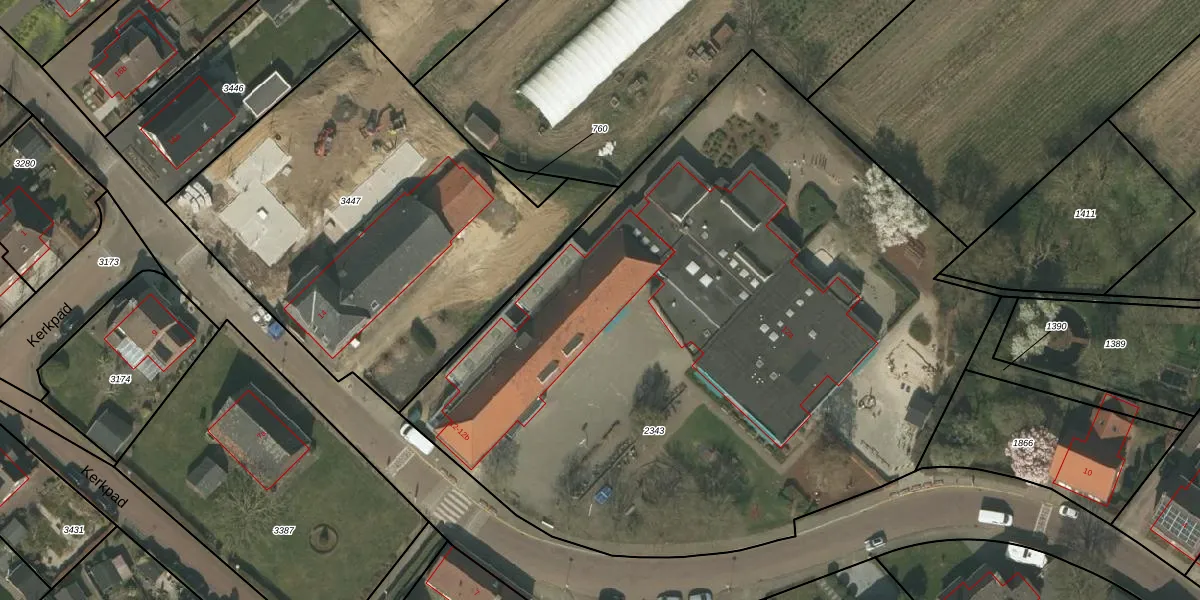 Het perceel waarop Kerkstraat 12 staat heeft een oppervlakte van 4915 m². Dit is een zeer groot perceel. De perceeloppervlakte wordt geregistreerd door het Kadaster. Gedetailleerde informatie over de maten van dit perceel kunt u vinden in het rapport Kadastrale kaart met maatvoering van Kerkstraat 12.