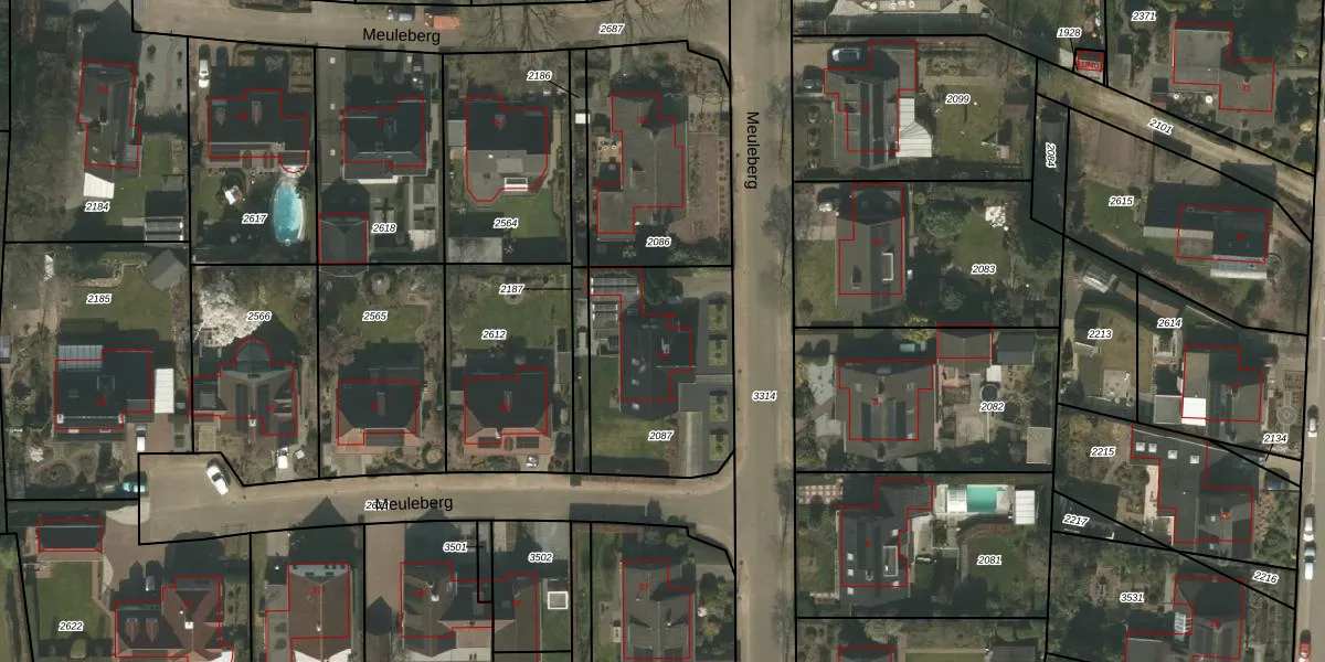 Het perceel waarop Meuleberg 51 staat heeft een oppervlakte van 690 m². Dit is een groot perceel. De perceeloppervlakte wordt geregistreerd door het Kadaster. Gedetailleerde informatie over de maten van dit perceel kunt u vinden in het rapport Kadastrale kaart met maatvoering van Meuleberg 51.