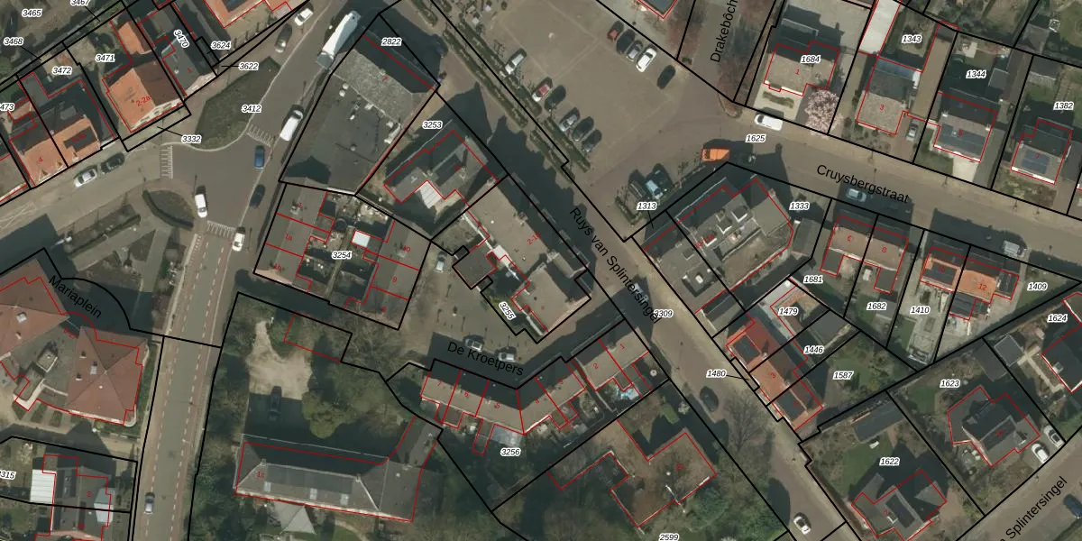 Ruys van Splintersingel 14 is gelegen op kadastraal perceel BSL02G3255. Deze kadastrale aanduiding is uniek en wordt gebruikt door het Kadaster om eigendomsrechten en andere zakelijke rechten vast te leggen. Het perceel maakt onderdeel uit van de kadastrale gemeente Beesel.