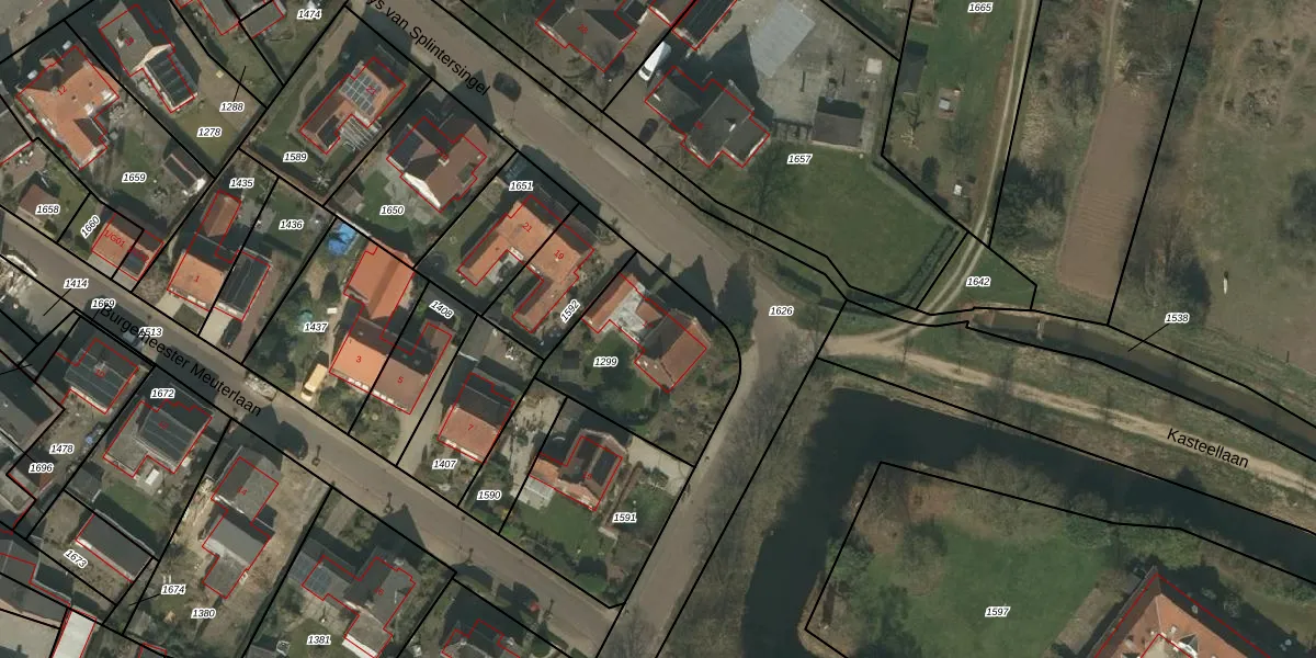 Het perceel waarop Ruys van Splintersingel 17 staat heeft een oppervlakte van 570 m². Dit is een groot perceel. De perceeloppervlakte wordt geregistreerd door het Kadaster. Gedetailleerde informatie over de maten van dit perceel kunt u vinden in het rapport Kadastrale kaart met maatvoering van Ruys van Splintersingel 17.