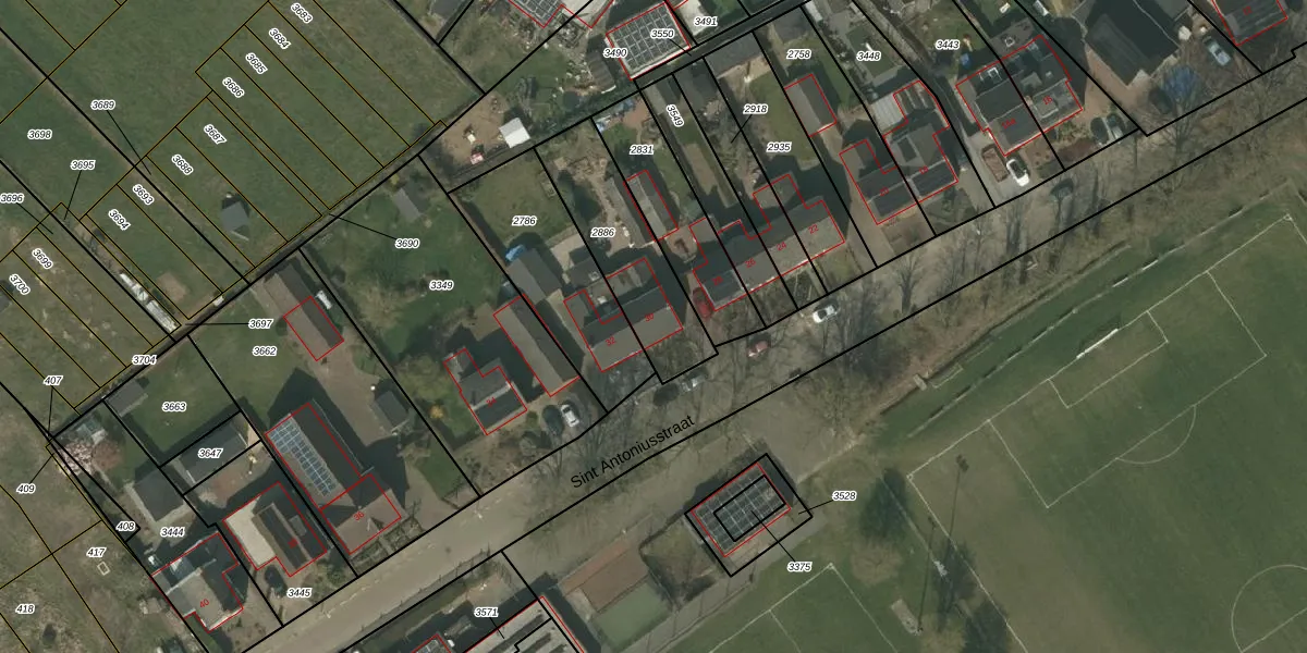 Het perceel waarop Sint Antoniusstraat 30 staat heeft een oppervlakte van 410 m². Dit is een groot perceel. De perceeloppervlakte wordt geregistreerd door het Kadaster. Gedetailleerde informatie over de maten van dit perceel kunt u vinden in het rapport Kadastrale kaart met maatvoering van Sint Antoniusstraat 30.