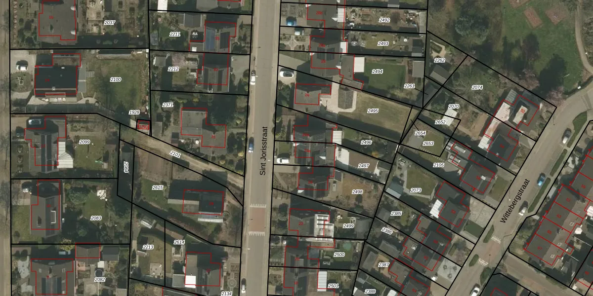 Het perceel waarop Sint Jorisstraat 24-a staat heeft een oppervlakte van 301 m². Dit is een groot perceel. De perceeloppervlakte wordt geregistreerd door het Kadaster. Gedetailleerde informatie over de maten van dit perceel kunt u vinden in het rapport Kadastrale kaart met maatvoering van Sint Jorisstraat 24-a.