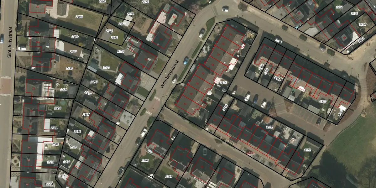 Wittebergstraat 65 is gelegen op kadastraal perceel BSL02A3374. Deze kadastrale aanduiding is uniek en wordt gebruikt door het Kadaster om eigendomsrechten en andere zakelijke rechten vast te leggen. Het perceel maakt onderdeel uit van de kadastrale gemeente Beesel.
