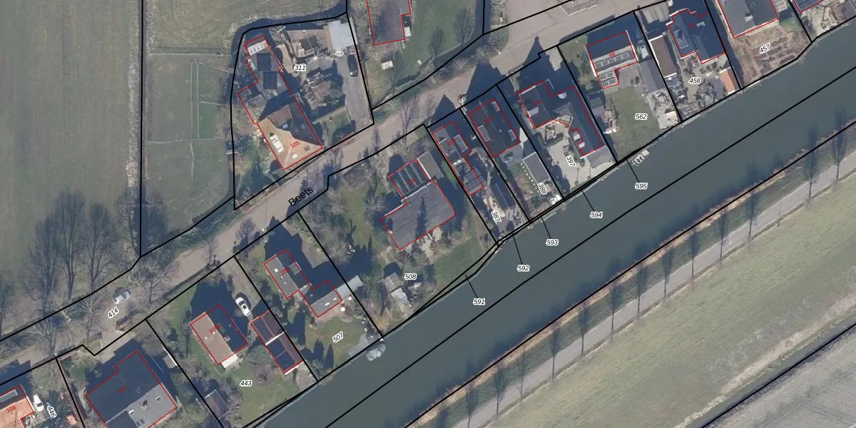 Het adres ligt op het perceel BEE05-A-508, dat zich in de kadastrale gemeente Beets bevindt. Het perceel is kleiner dan gemiddeld in Beets. Het perceel is 1145 m² groot, terwijl het gemiddelde ligt op 6424,45 m². De grootste perceeloppervlakte in de kadastrale gemeente is 16,4 ha. De kleinste oppervlakte bedraagt 0 m². Er zijn geen andere adressen aanwezig op het perceel. In de Basisregistratie Kadaster (BRK) werden de grenzen van het perceel geregistreerd op 09-08-1999.