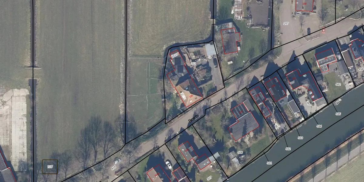 Beets 105 is gelegen op kadastraal perceel BEE05A311. Deze kadastrale aanduiding is uniek en wordt gebruikt door het Kadaster om eigendomsrechten en andere zakelijke rechten vast te leggen. Het perceel maakt onderdeel uit van de kadastrale gemeente Beets.