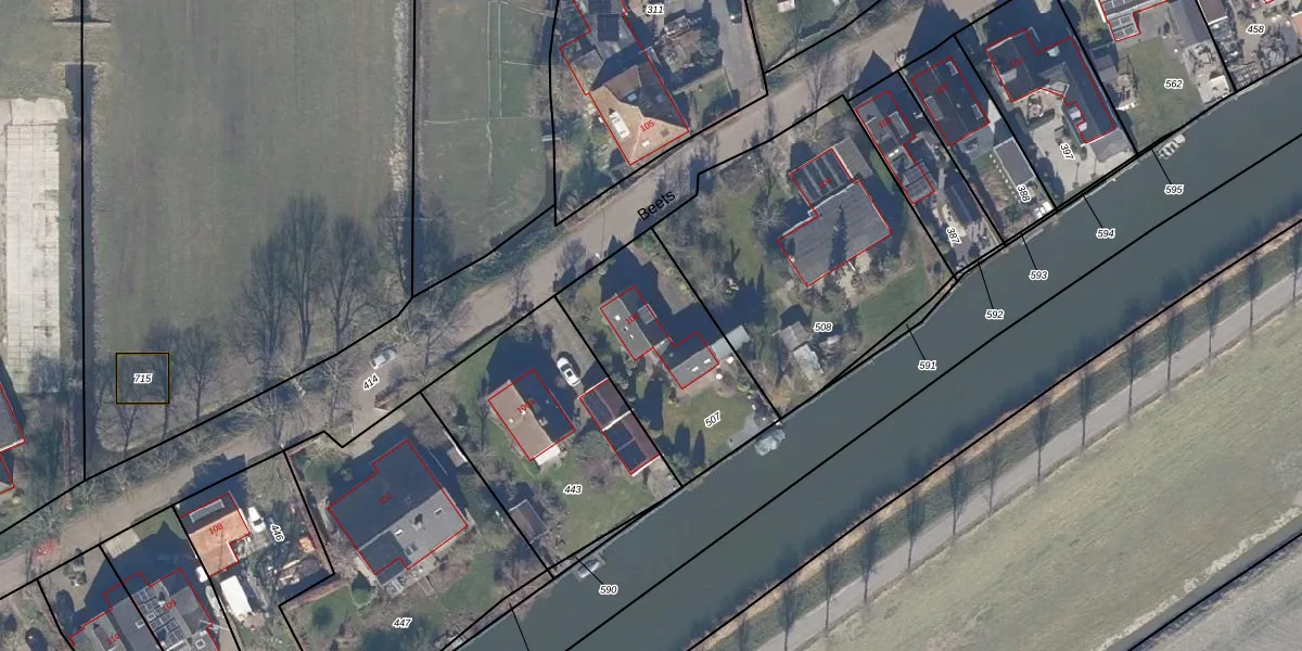 Gebruik de zoekbalk of klik op een perceel voor informatie over de adressen binnen dit perceel.
