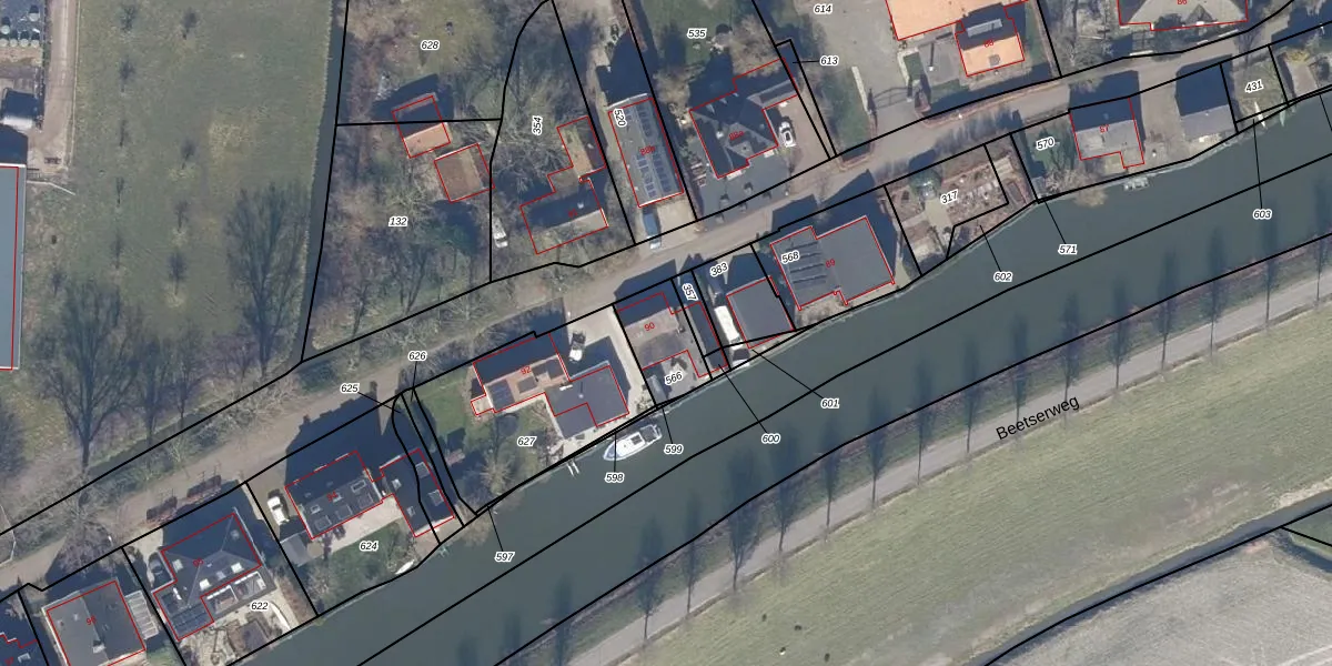 Het adres ligt op het perceel BEE05-A-566, dat zich in de kadastrale gemeente Beets bevindt. Het perceel is kleiner dan gemiddeld in Beets. Het perceel is 131 m² groot, terwijl het gemiddelde ligt op 6424,45 m². De grootste perceeloppervlakte in de kadastrale gemeente is 16,4 ha. De kleinste oppervlakte bedraagt 0 m². Er zijn geen andere adressen aanwezig op het perceel. De huidige grenzen van het perceel zijn digitaal in de Basisregistratie Kadaster (BRK) geregistreerd op 11-08-2004.