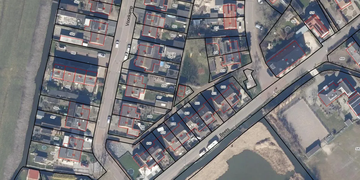 Het adres ligt op het perceel BEE05-B-589, dat zich in de kadastrale gemeente Beets bevindt. De gemiddelde perceelgrootte in Beets is 6424,45 m². Dit perceel is kleiner: de perceeloppervlakte bedraagt 67 m². De grootste perceeloppervlakte in de kadastrale gemeente is 16,4 ha. De kleinste oppervlakte bedraagt 0 m². Er zijn geen andere adressen aanwezig op het perceel. In de Basisregistratie Kadaster (BRK) werden de grenzen van het perceel geregistreerd op 03-12-2001.