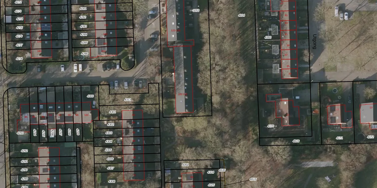 Het perceel waarop Bommegaerde 104 staat heeft een oppervlakte van 2365 m². Dit is een zeer groot perceel. De perceeloppervlakte wordt geregistreerd door het Kadaster. Gedetailleerde informatie over de maten van dit perceel kunt u vinden in het rapport Kadastrale kaart met maatvoering van Bommegaerde 104.