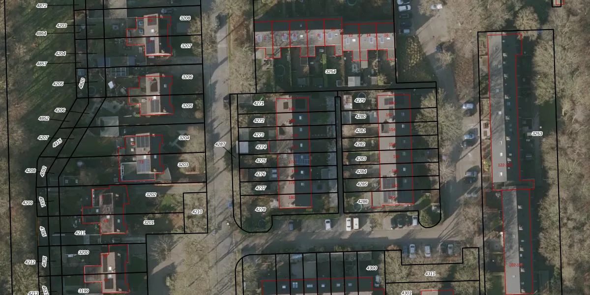 Gebruik de zoekbalk of klik op een perceel voor informatie over de adressen binnen dit perceel.