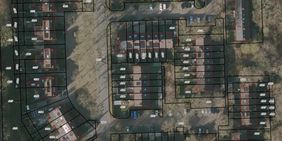 Gebruik de zoekbalk of klik op een perceel voor informatie over de adressen binnen dit perceel.