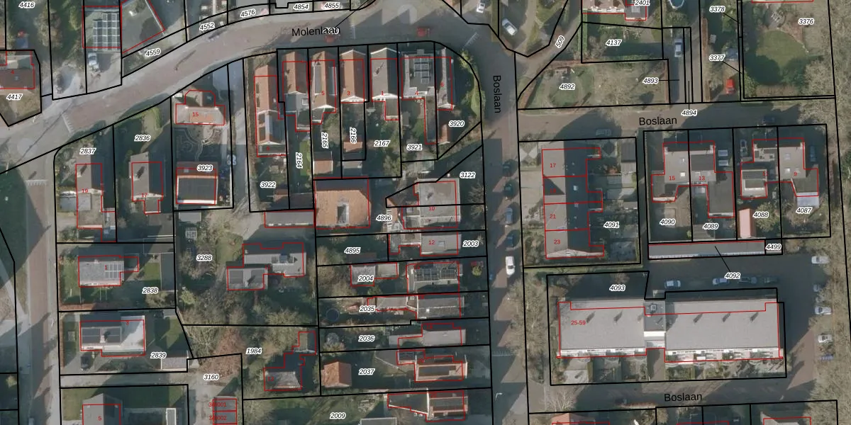 Het perceel waarop Boslaan 10 staat heeft een oppervlakte van 467 m². Dit is een groot perceel. De perceeloppervlakte wordt geregistreerd door het Kadaster. Gedetailleerde informatie over de maten van dit perceel kunt u vinden in het rapport Kadastrale kaart met maatvoering van Boslaan 10.