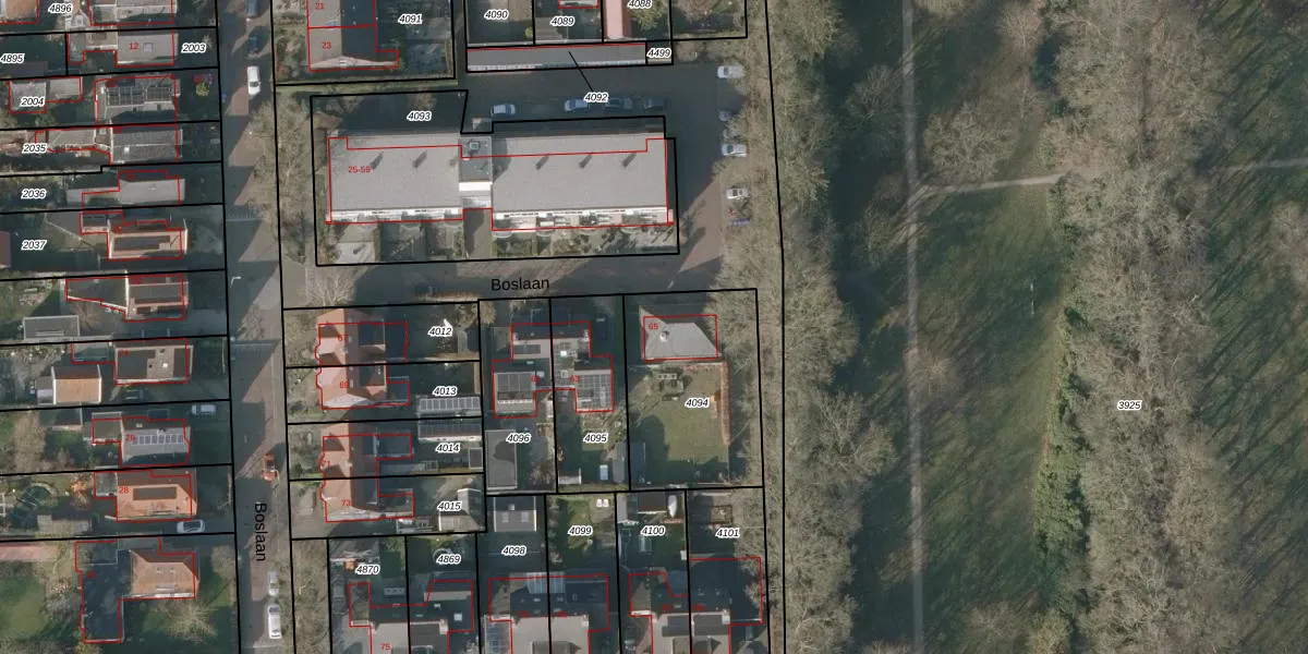 Het perceel waarop Boslaan 65 staat heeft een oppervlakte van 616 m². Dit is een groot perceel. De perceeloppervlakte wordt geregistreerd door het Kadaster. Gedetailleerde informatie over de maten van dit perceel kunt u vinden in het rapport Kadastrale kaart met maatvoering van Boslaan 65.