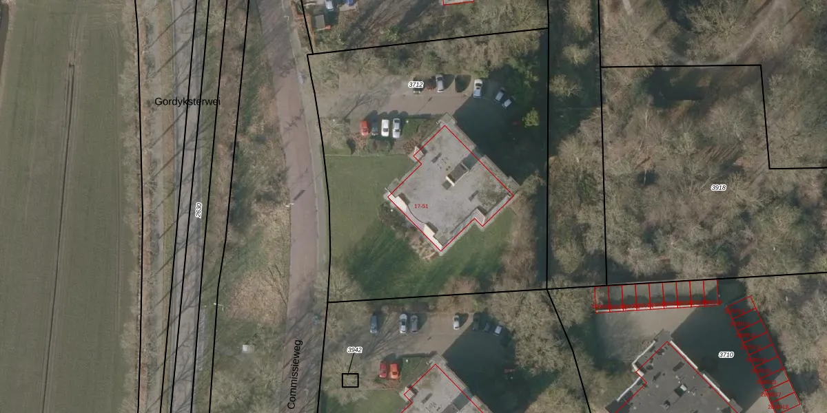 Het perceel waarop Commissieweg 37 staat heeft een oppervlakte van 3335 m². Dit is een zeer groot perceel. De perceeloppervlakte wordt geregistreerd door het Kadaster. Gedetailleerde informatie over de maten van dit perceel kunt u vinden in het rapport Kadastrale kaart met maatvoering van Commissieweg 37.