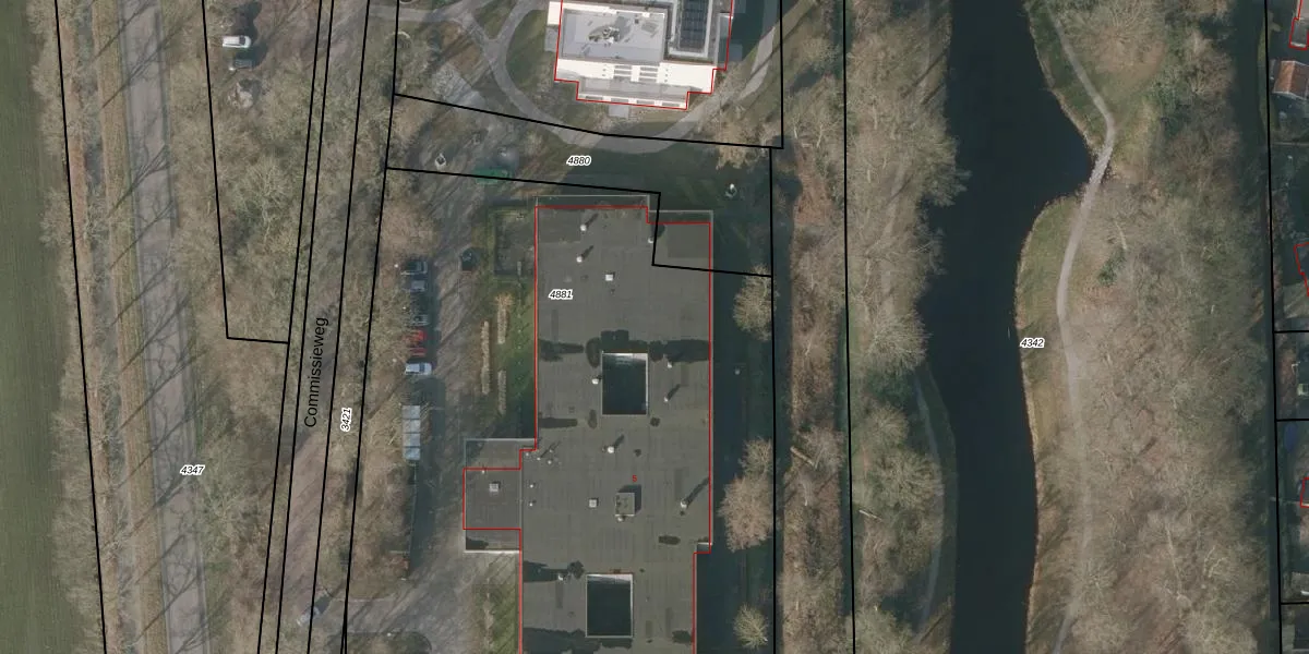 Het perceel waarop Commissieweg 5-53 staat heeft een oppervlakte van 6031 m². Dit is een zeer groot perceel. De perceeloppervlakte wordt geregistreerd door het Kadaster. Gedetailleerde informatie over de maten van dit perceel kunt u vinden in het rapport Kadastrale kaart met maatvoering van Commissieweg 5-53.