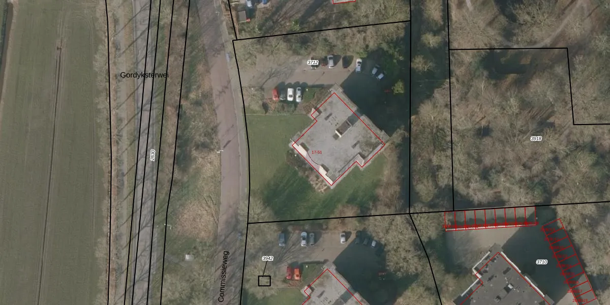 Het perceel waarop Commissieweg 51 staat heeft een oppervlakte van 3335 m². Dit is een zeer groot perceel. De perceeloppervlakte wordt geregistreerd door het Kadaster. Gedetailleerde informatie over de maten van dit perceel kunt u vinden in het rapport Kadastrale kaart met maatvoering van Commissieweg 51.