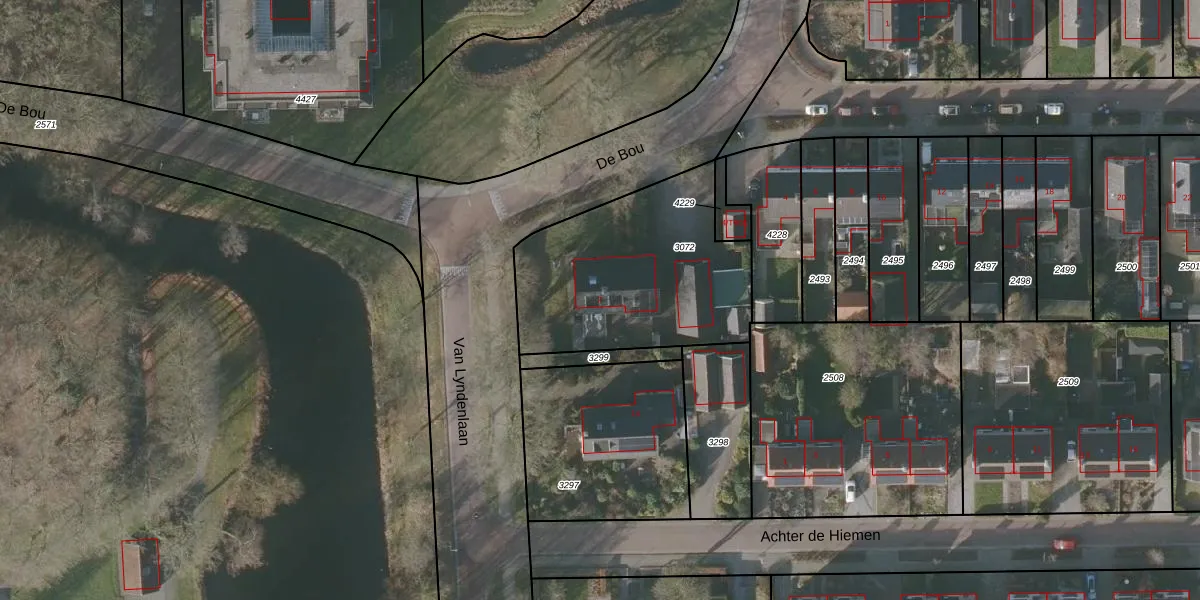 Het perceel waarop De Bou 2 staat heeft een oppervlakte van 927 m². Dit is een groot perceel. De perceeloppervlakte wordt geregistreerd door het Kadaster. Gedetailleerde informatie over de maten van dit perceel kunt u vinden in het rapport Kadastrale kaart met maatvoering van De Bou 2.